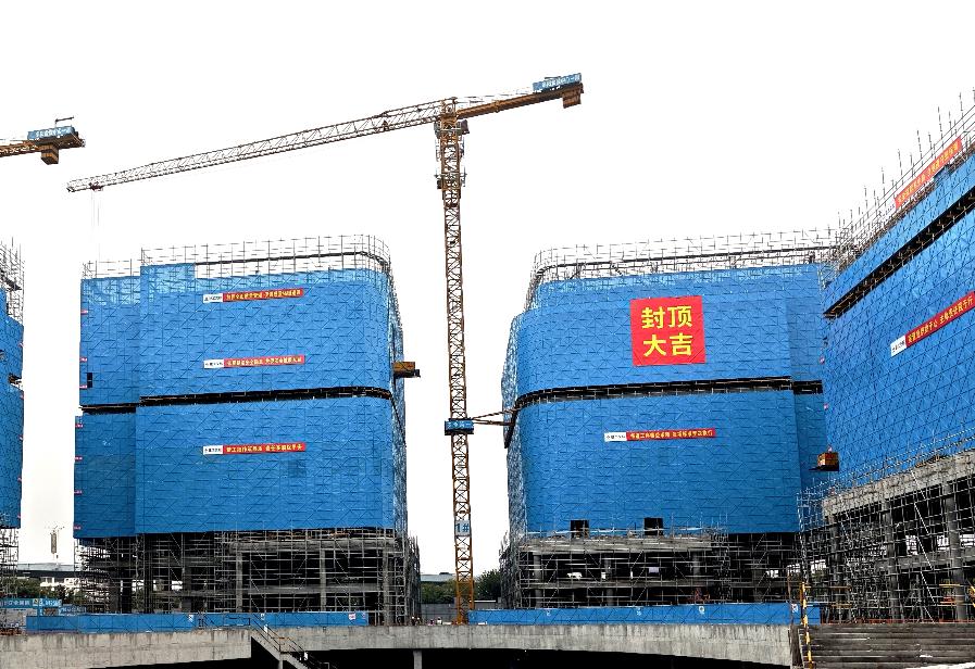 1014日,阜陽智谷產(chǎn)業(yè)園(B)區(qū)項目地上主體結(jié)構(gòu)施工完成90%,主樓砌體及二次結(jié)構(gòu)樣板施工已啟動。
